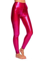 Women's metallic shimmering leggings with long legs and high waist in Fuchsia.
